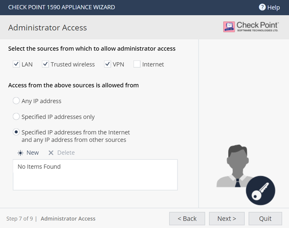 Select the IP address from which the administrator can access the appliance:
