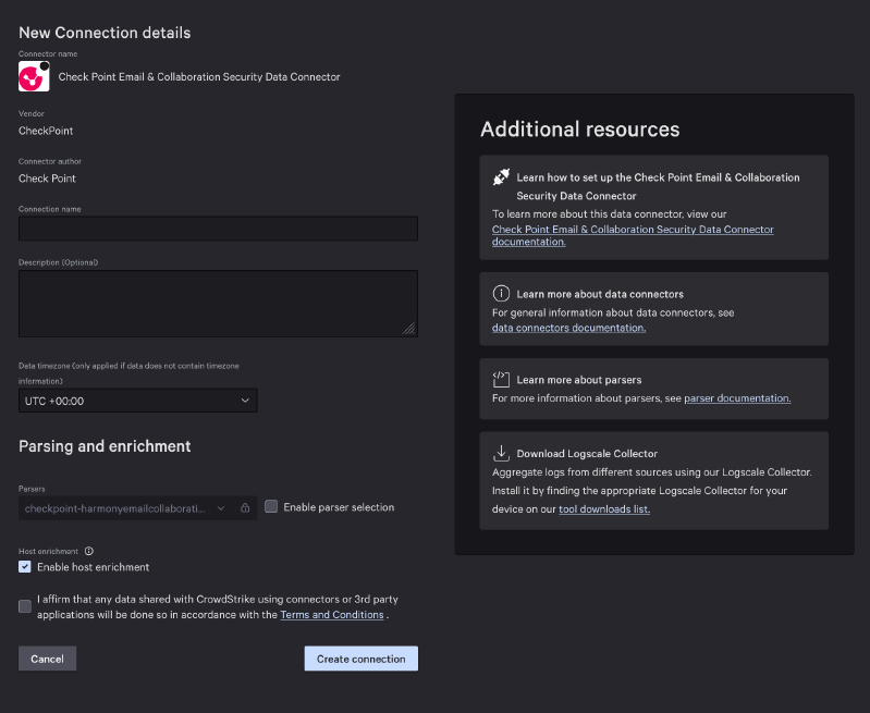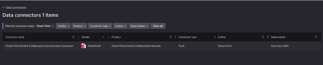 In the Data connections page, enter Check Point in the search bar and filter by connector name.