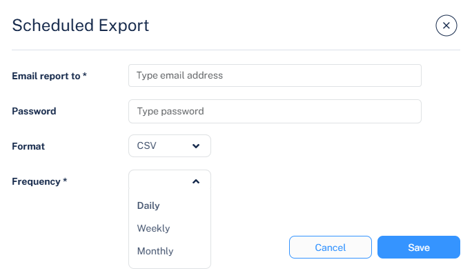 The Scheduled Export pop-up appears.