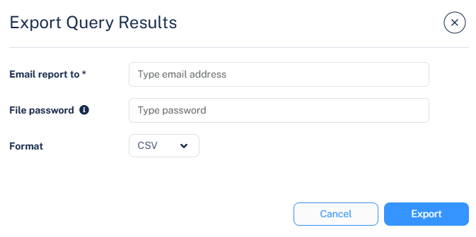 The Export Query Results pop-up appears.