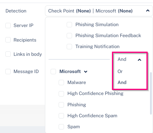 In addition, administrators can control the search condition between the Avanan and Microsoft detections.