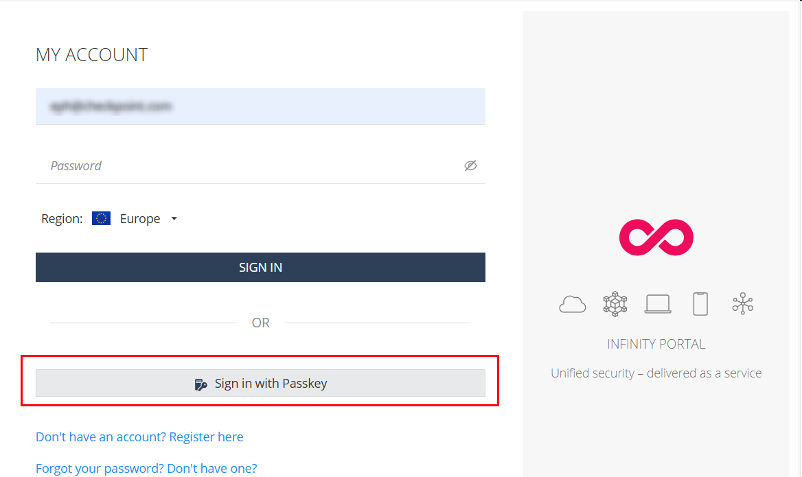 In the Infinity Portal, you can use a passkey if Single Sign-On (SSO