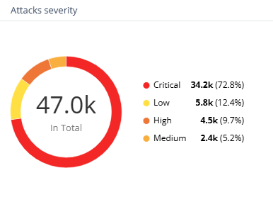 The Attacks severity widget shows the distribution of threat prevention events based on the severity level.