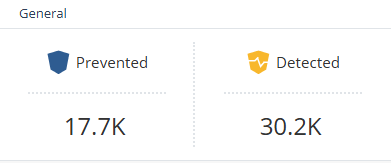 The General widget shows the total number of file security threat prevention events in the selected time-range and selected products.