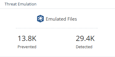 The Threat Emulation widget shows the total number of threat prevention events processed by the Threat Emulation service.