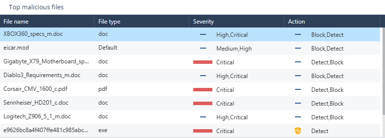 Severity level of the file for the action taken (Detect/Block)