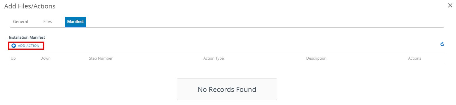6. Go to the Manifest tab and under Installation Manifest, click Add Action.