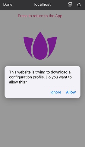 To allow installation of the configuration profile, tap Allow.