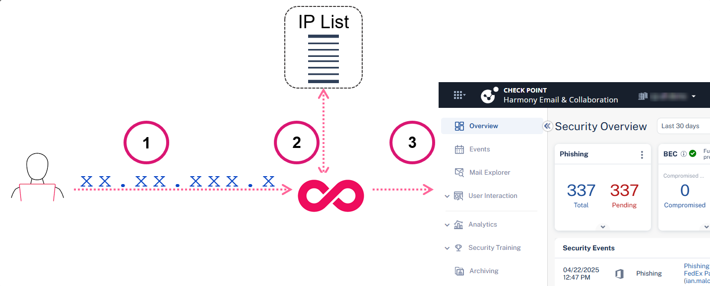 In addition to SSO and Multi-Factor Authentication access control, you can configure a list of IP addresses as an added layer of security. This means that for your users to get access to the Check Point Portal, the administrator must add their IP address to an IP access list. The Check Point Portal automatically blocks attempts to enter the portal from an IP address that is not on the IP Access List.