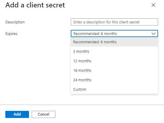 Click Client secrets > + New client secret.