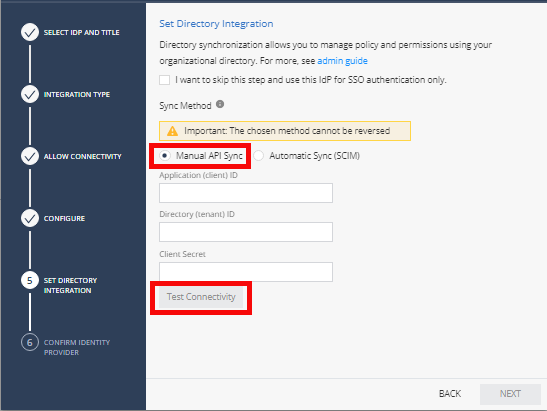 Note - If you selected to use SCIM, then this step is not necessary. |
