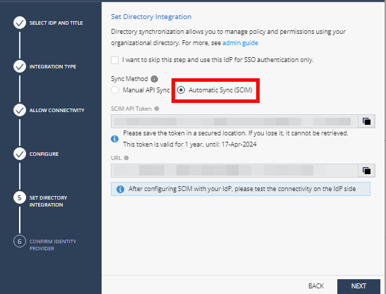 Copy and save the SCIM API Token and URL.