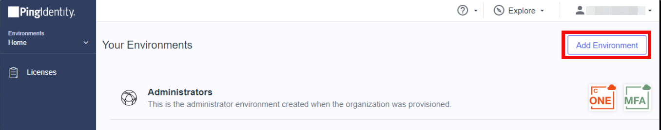 First, create a new environment in the Ping Identity Portal.