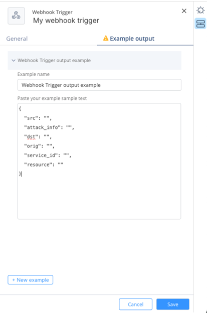 Note - When you replace a trigger, the Example Output associated with the previous trigger is removed. Any steps in the automation that rely on fields from that output displays validation errors.