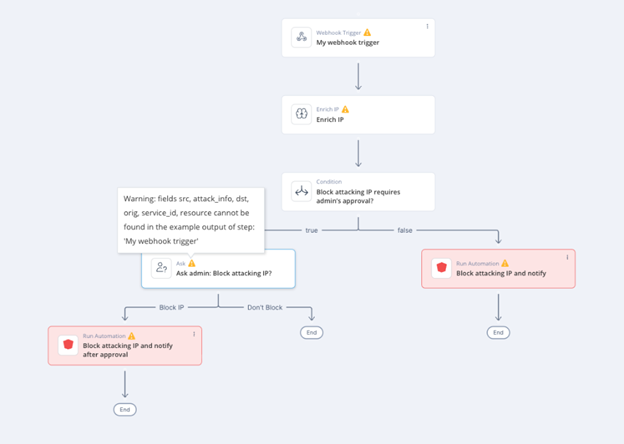Enter your prompt, for example, Create an automation that blocks IPS attacks, opens a ticket, and notifies the admin.