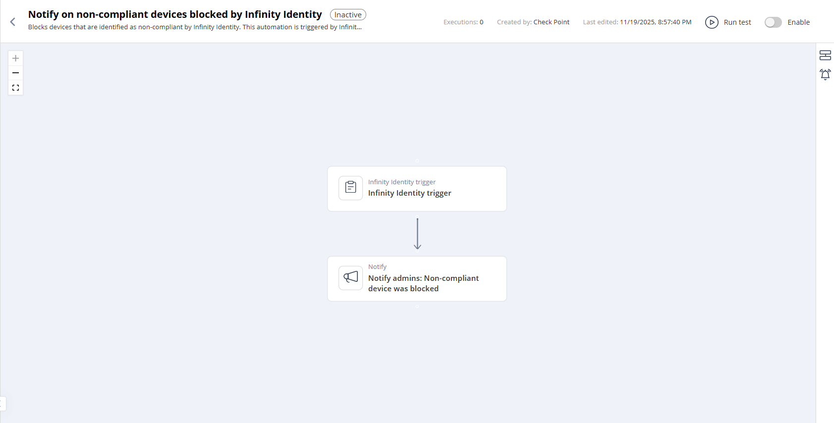 This automation sends notifications when blocked devices are identified as non-compliant by Infinity Identity.