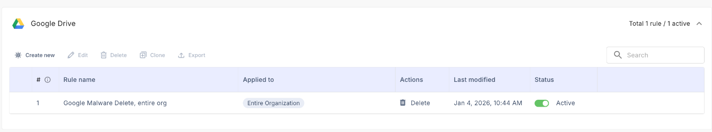 Click Clone to duplicate an existing rule.