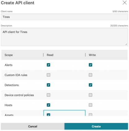 The Create API client window appears.