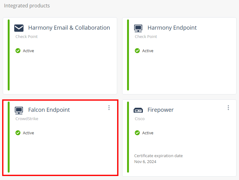 In the Integrated products section, verify if Falcon is listed as Active.