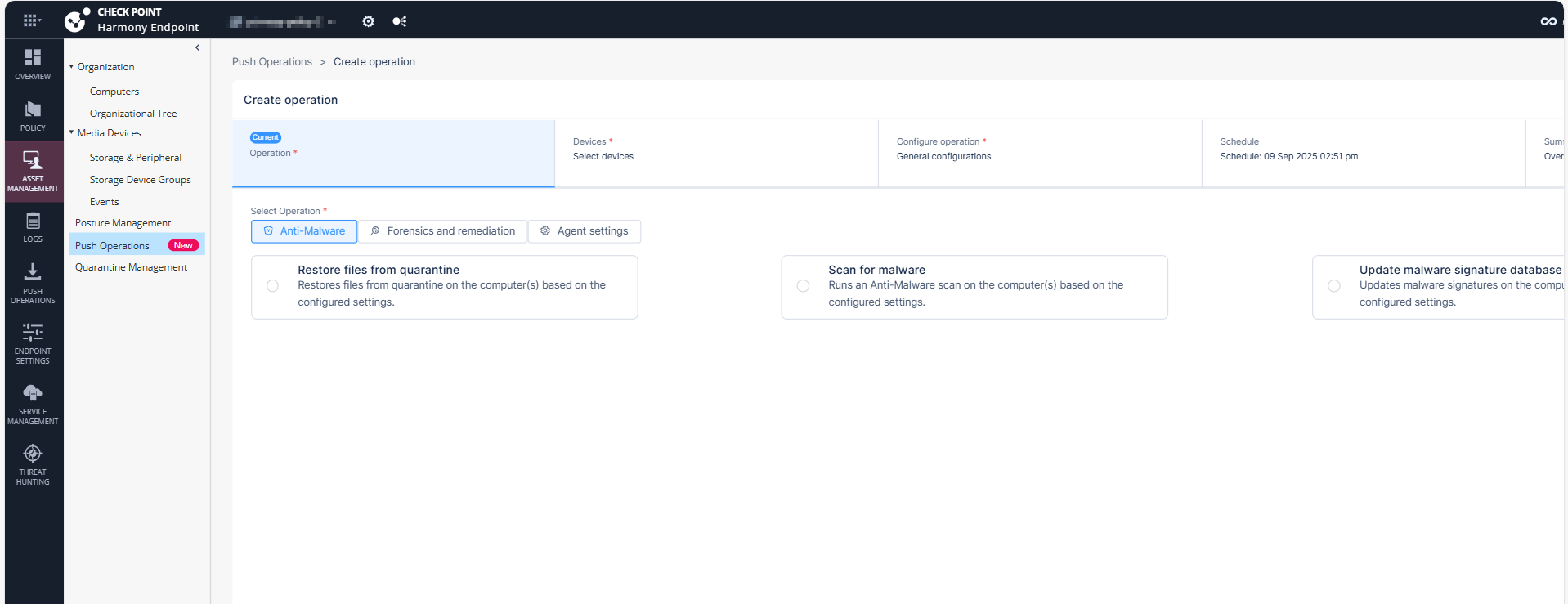 The Push Operations feature in Harmony Endpoint enables you to run predefined tasks remotely on managed endpoint devices. These tasks support automation, diagnostics, enforcement, and recovery workflows.